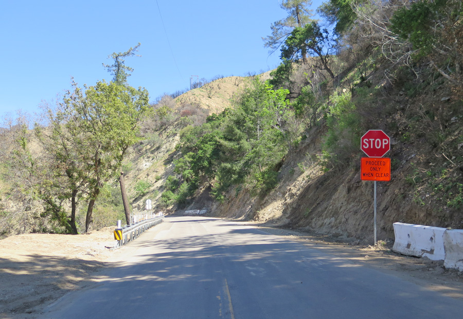 The repair work is done, but you can see the stop signs are still in place.