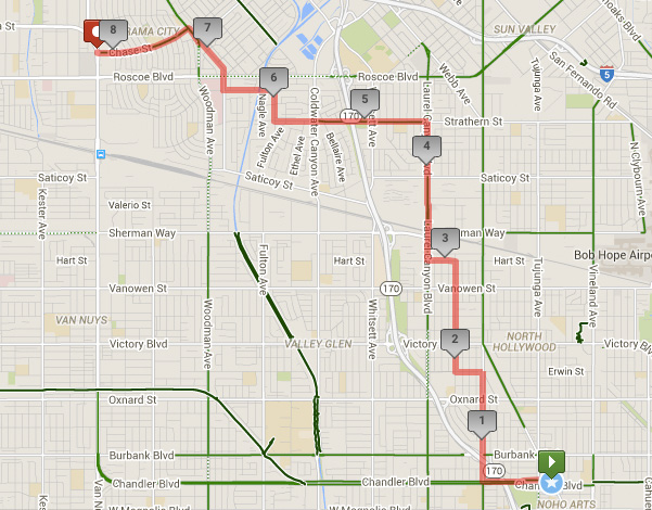 My guess is that a lot of people will be trying to get to CicLAvia from the North Hollywood Red Line Station to stay car free for the day. That’ll add roughly an extra eighteen miles to and from the course, but that’s something I’d put up with.